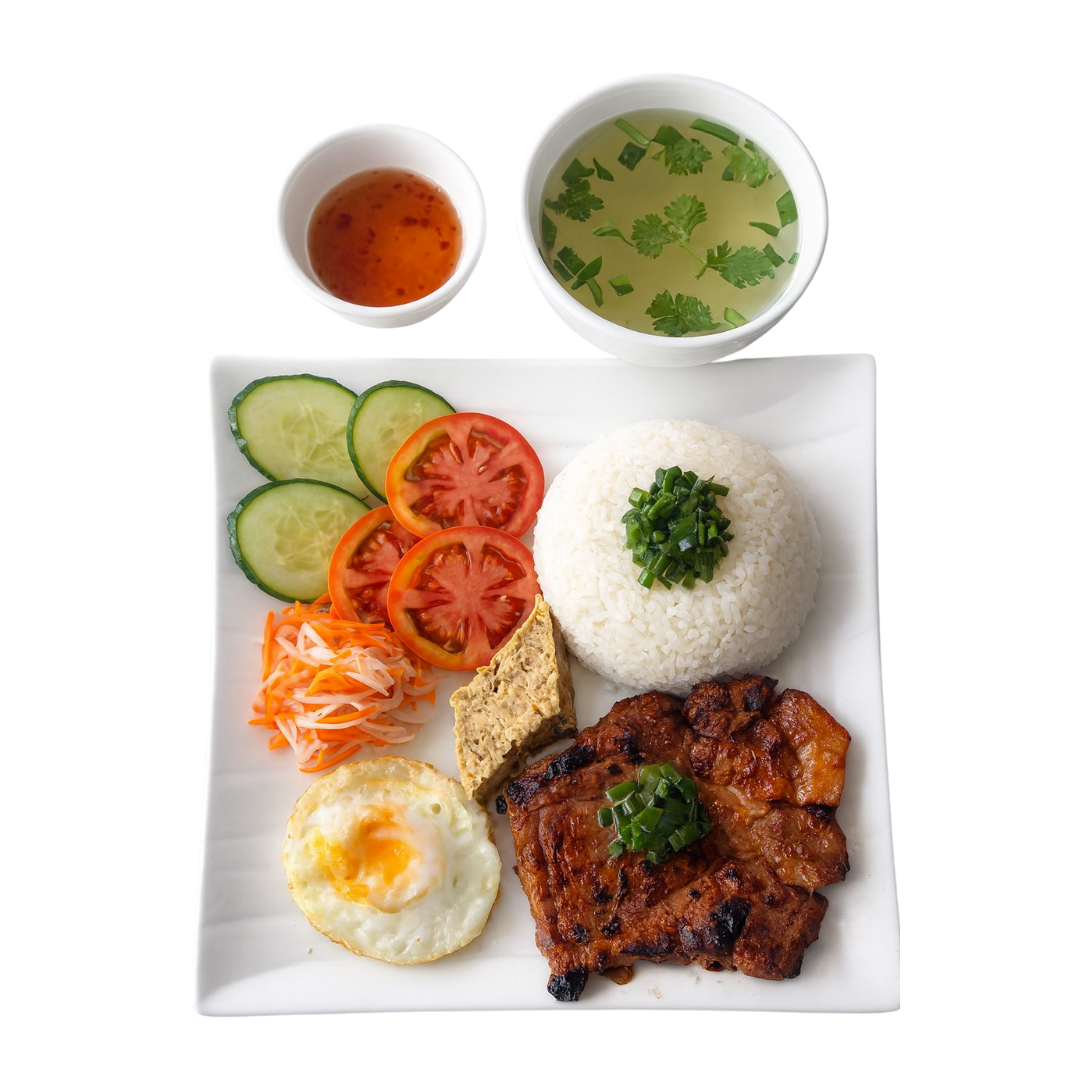 Broken Rice with Grilled Pork, Pate & Fried Egg